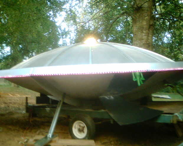 es una entrada en el hacer: revistero concurso DIY de Halloween de 2008. Construí un casi 9-10 pies de diámetro platillo volador que se mueve arriba y abajo de cerca de 4 pies con un extraterrestre que apareció como el platillo aterrizado.El movimien