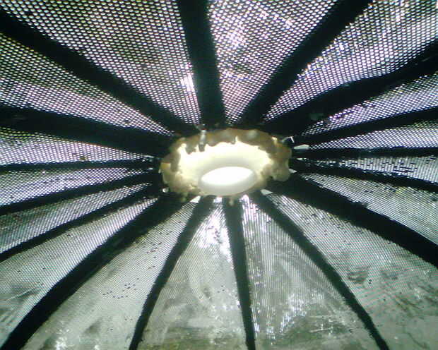 me ha gustado el hecho de que el plato de malla tenía una pequeña abertura en su centro, porque eso gace me una oportunidad para añadir una luz para un efecto extra. Cavé una luz de pinza y una cúpula de cristal de una lámpara de ventilador de techo. Después de colocar con cuidado la cúpula en la de 7" de apertura y centrado, solía poco cosas es expansión de espuma"pegue"en su lugar. sí, parece un lío, pero no se notará. Todavía podría recortar la espuma si sientes la necesidad. Luego coloca el escudo de la luz de la abrazadera sobre la parte inferior de la abertura y atornillar con unos pequeños tornillos que tenía en stock. Corrió el cable de alimentación a lo largo el tubo cuadrado "de regreso" hacia abajo y hacia fuera de la "espalda". Como se puede ver, da un brillo agradable incluso con una bombilla incandescente de 60 vatios. Luego tomó un conjunto de luces estroboscópicas de efectos de tierra y colocado alrededor de la abertura de la escotilla para añadir un efecto intermitente. Fue bueno que eran verdes en color y escurr de 12 voltios. Puse un par de pilas de 12 voltios scooter dentro y tenían pinzas de cocodrilo en los extremos del cable para cambiar rápidamente si era necesario. Y ¿por qué ese pequeño hombre verde en el platillo? Más de que verás más adelante.