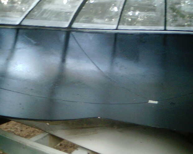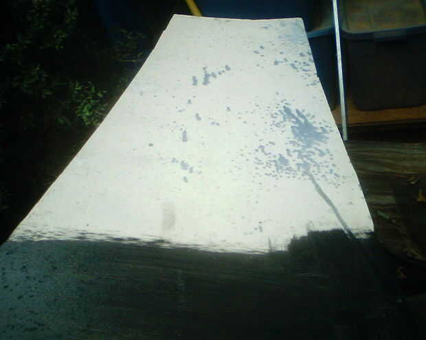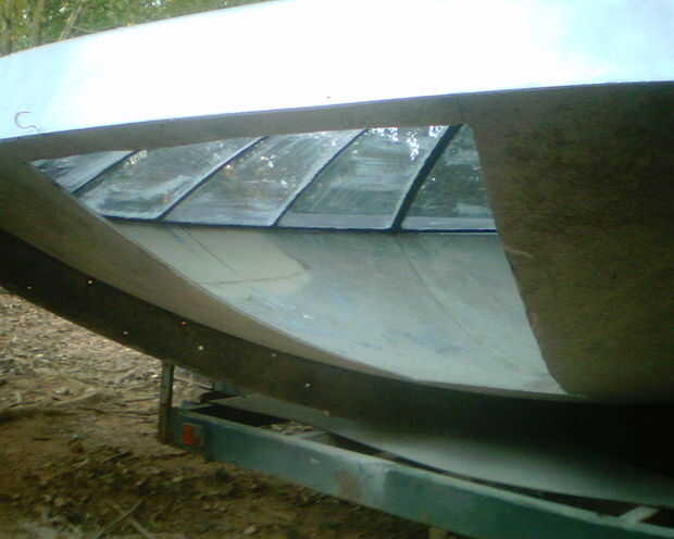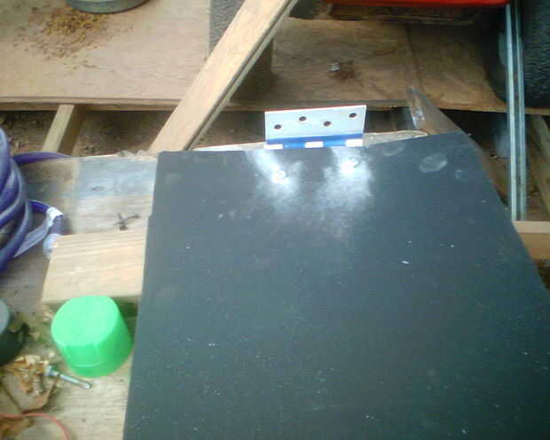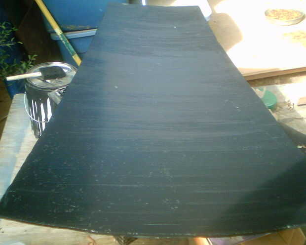 Mi siguiente paso fue realizar una abertura en el interior del platillo y pintarlo. Esto fue lo que salvó la cuarta sección del plato de fibra de vidrio para. Tomé algunas medidas dentro de esta sección y divididas junto con las bridas en cerca de cuatro pulgadas y tres pies de largo. Con una vara de metal, dibujó las líneas con un rotulador a lo largo de estas marcas y corte la abertura con mi amoladora angular. Sí, crees que sería más apropiado usar una sierra de calar, pero me ha gustado usar la amoladora angular porque cortar rápidamente con mucho menos posibilidades de romper una hoja. Fue como ir a través de mantequilla caliente con un cuchillo caliente! Una vez que la parte inferior estaba abierta, fui capaz de arrastrarse dentro con el rodillo y la pintura negra para cubrir el interior "el piso". Para volver a colocar la tapa al cuerpo, utilicé una bisagra y unos tornillos de cabeza de cúpula. Luego pinté el lote, incluyendo las cabezas de los tornillos. No había necesidad de añadir ningún tipo de hardware de cierre, como destinado a la escotilla a permanecer abierto en todo momento.
