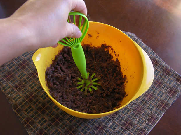 2. usted debe terminar con las tazas de 1/3 de 2 a 3 tazas de frijoles molidos. La porción de puré de frijol no debe ser menos de 2 1/3 tazas, o la mezcla será demasiado fina; o más de 3 tazas, o la mezcla será espesa y terminarás a utilizar dos moldes de muffin u hornear en dos tandas.