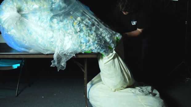 Cuando limpie para arriba más adelante, si puedes, usa una aspiradora que puede salvar el relleno lo puede tirar en la bolsa. Nunca sabes cuando este puede subir otra vez.