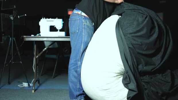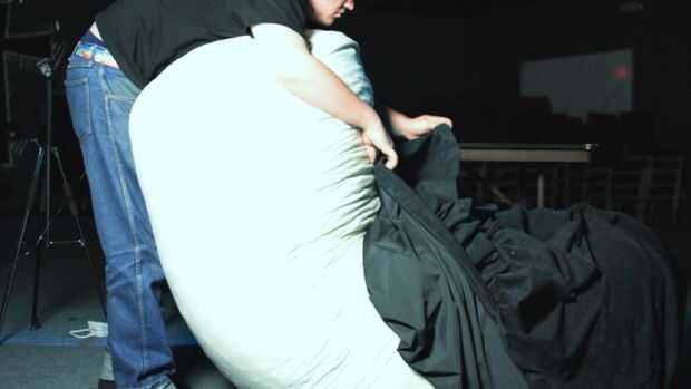 Poner la tapa en el bolso terminado toma un poco de tiempo, pero se puede hacer. Vestíos de un lado, poner los "círculos" uno contra el otro. Inclinarse el sofá encima de sí mismo, y luego agarra la tapa y tire de. Ahora sólo lentamente aplane la bestia y conformo en su nueva jaula. Por último, cierre de velcro la parte inferior, y listo! Tú mismo tienes una pieza deliciosamente agradable de soporte lumbar!