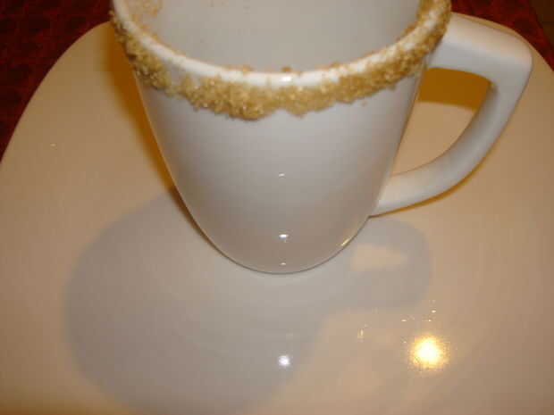 Suficiente el turbinado Vierta el azúcar en un plato bajo para cubrir el borde de la taza de café.