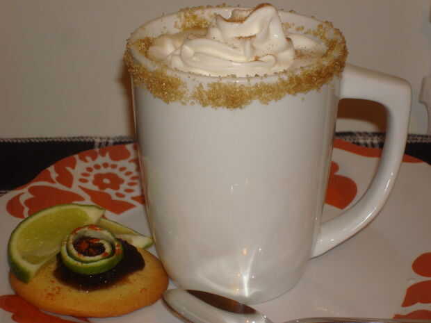 serví este café con una galleta con mermelada de frambuesa, un toque de Chile Habanero y una rodaja de Lima. La cal se saca el sabor de la pimienta. Sentí que necesitaba un poco de azúcar sabor para llevar a cabo las especias por lo que añadí el azúcar en el borde de la taza de café. La próxima vez que hago, voy a añadir más pimienta.  Me recomendó solo un guión para esta receta pero se pueden añadir más si te gusta picante.  Esta mezcla de café sería el regalo perfecto para los amantes de la comida picante!