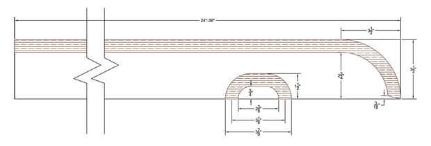 Una nota sobre el mango: se verá en el dibujo mide un pequeño 3/16" corte en el extremo curvo. Este corte es opcional, otra vez, basado en preferencias, pero creo que es totalmente la pena. Crea un ligero ángulo hacia el interior de las cabezas del cepillo que ayuda a alinear las cabezas con el nuevo ser rayado cuando se usa sobre el hombro. Te recomiendo hacerlo pero se basa en la geometría del cuerpo de los usuarios... hablar de encargo!!!!