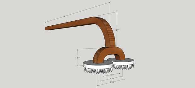Empezar por echar un vistazo a la medido dibujar y entender que cada conector cabeza se dimensionarán según el cabezal del cepillo del tamaño que utilice. Mina tiene un diámetro de 3" por lo que estas medidas dejan un espacio de 1/8" entre ellos, asegúrese de ajustar en consecuencia. También es necesario determinar cuánto tiempo desea que el mango de la rascador. 36" de largo es cómodo para mí mientras que una persona menor puede 24", sólo tienes que jugar y ver qué encaja mejor.