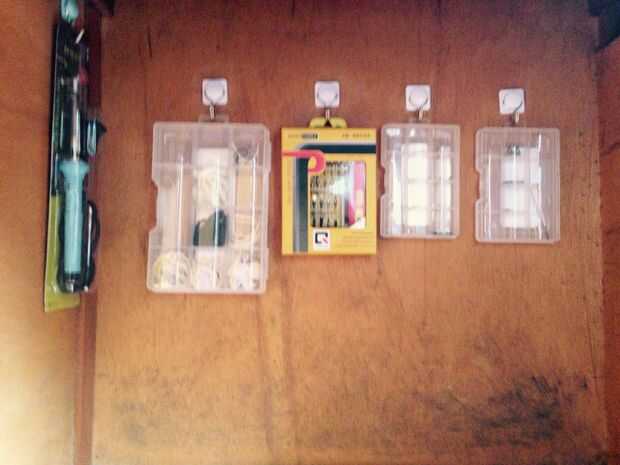 Con la ayuda de algunos casos con soportes y ganchos, organizar algunas herramientas (soldadura, tornillos, destornilladores, clavos, etc.) allí.