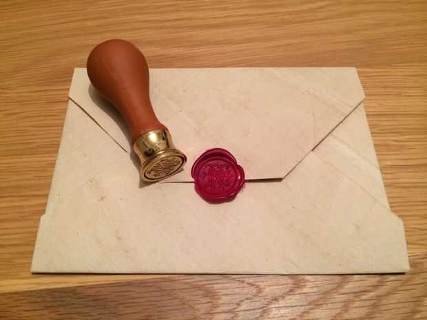 Quemar la cera y el goteo en un círculo pequeño en el borde. Dejar unos segundos y sello de la cera. Retirar después de otros pocos segundos y estás acabado. Volumen de ventas, dirección, sello y enviar.