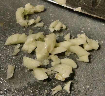 Usted puede seguir trabajando el ajo hasta que quede del tamaño deseado, incluso convirtiéndola en una pasta. Puede "rock" el filo de su cuchillo el ajo si ves cualquier piezas que están sobre el tamaño y fuera de lugar.