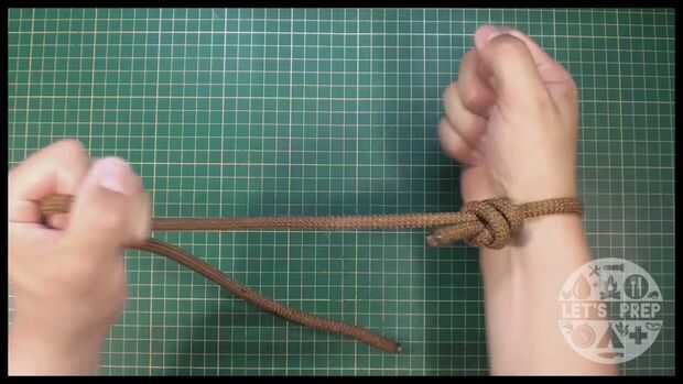 1. Puede probar el nudo como se muestra en la imagen. Si has hecho correcto debe apretar la soga correctamente e incluso temblando no abrirlo.