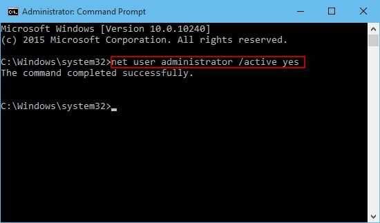 2. escribe el comando net usuario administrador /active yes y presiona Enter. Luego se puede habilitar la cuenta de administrador integrada en Windows.