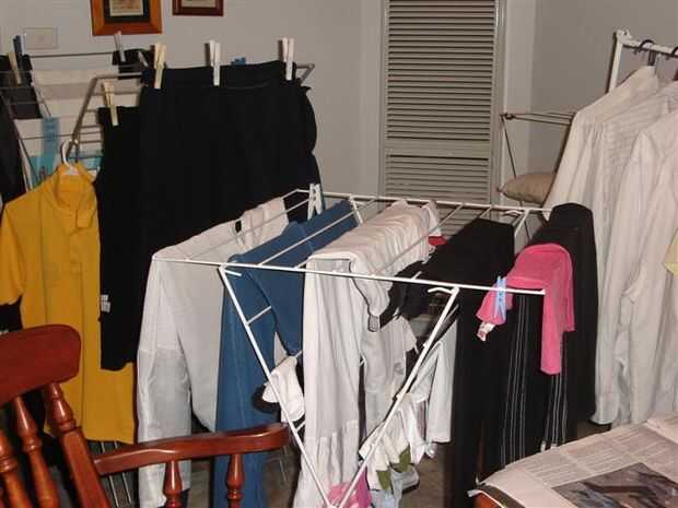 3. al secar la ropa, en lugar de secado en la secadora, colgar en el tendedero o si se trata de lluvia fuera de ponerlos en un tendedero delante de un lugar caliente (fuego o calentador).