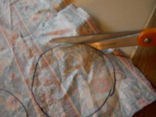 En primer lugar, coloque la tapa en la tela, asegurándose de que la tela es cara abajo.