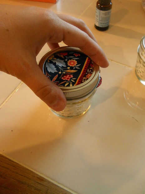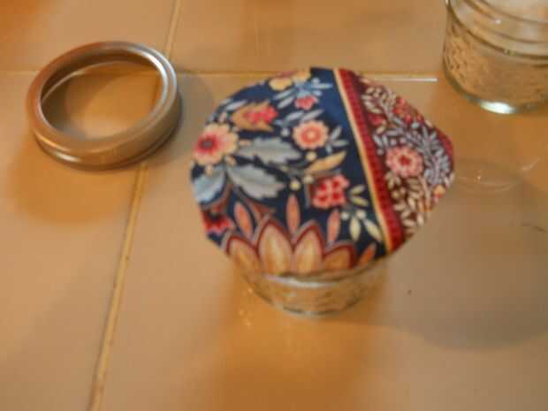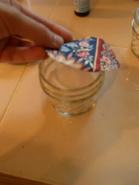 Coloque la tela sobre la parte superior, centrado. Suavemente presione la tapa que se gira hacia abajo y gire en el lugar. Ten cuidado, la tela se crujir. Por eso recomiendo un desplazamiento mayor al cortar hacia fuera.