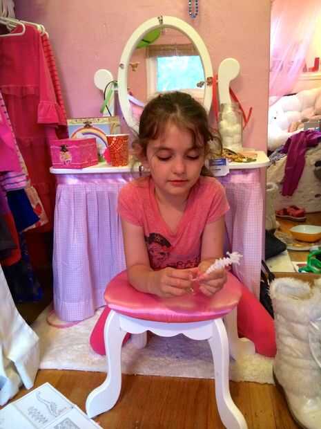 Aquí es un caballito de mar que hice con papá para decorar mi rincón de tocador.