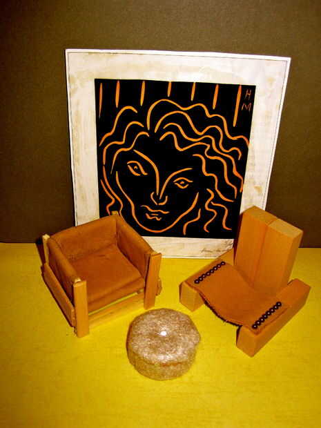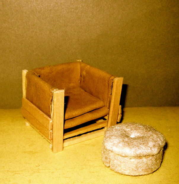 - He creado la espalda y los brazos con pequeños bloques de madera (ex-Jenga piezas?) pegados con pegamento de madera.