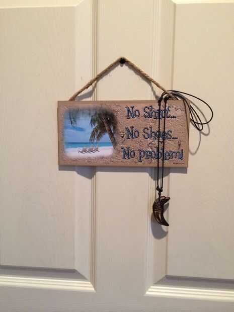 Un signo apropiado para considerar le encanta caminar alrededor de la casa sin camisa en la puerta de mi hijo. El diente de tiburón que obtuvo para sí mismo en Hawaii nadando hacia fuera a una berma de coral.