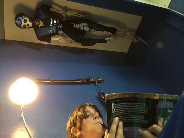 Si miras hacia arriba te puede en una pequeña sorpresa: Murray el esqueleto de Ninja.