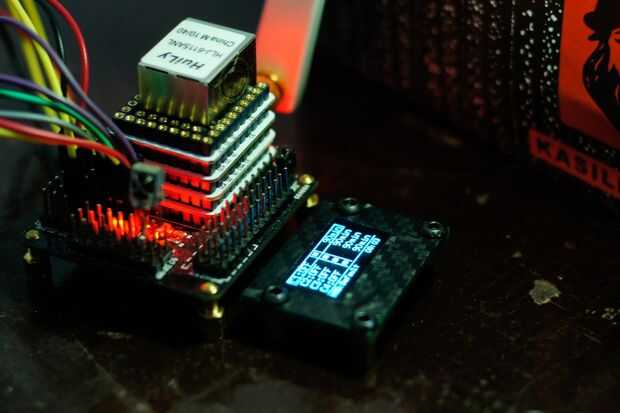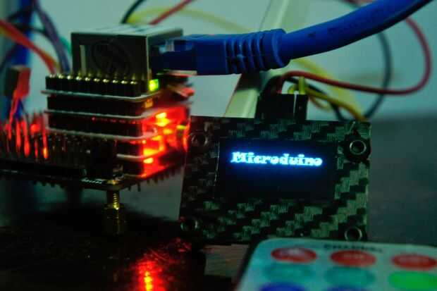 Microduino ofrecen MEGA644, 28J60, L 24 01, módulos OLED, simplemente apilando las tablas de Microduino juntos y conectar un cabezal receptor infrarrojo en el tablero, el sistema funciona.