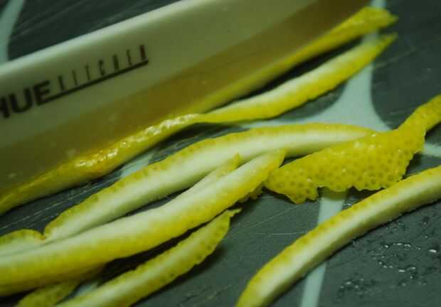 - Cortar la corteza de limón, Lima y naranja. Usando la corteza reducirá al mínimo la cantidad de azúcar que entra en el rocío.