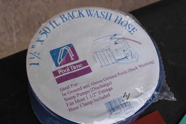 4. un sistema de drenaje de la piscina. Se utilizó un balde de 5 galones con alambre de pollo como un filtro, con una piscina manguera que sale de la parte inferior de la cubeta de drenaje.