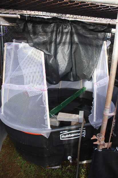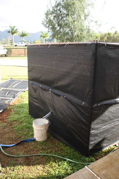 Utilizamos un tubo de vinilo para guiar el agua en la cubeta de filtro. Para hacer esto una vez más hemos perforado un agujero ligeramente más pequeño que el diámetro exterior de la tubería. La cosa agradable sobre el uso de tubería de vinilo es su flexibilidad, hacer el agujero más pequeño que la tubería y empujando a través de, podemos tener un sello hermético sin necesidad de preocuparse por calafateo. Cortamos unas ranuras en el extremo de la tubería, para facilitar el pase por el agujero.