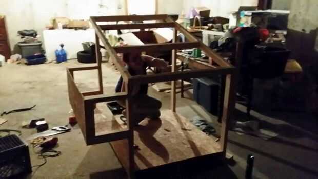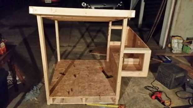 A continuación os adjunto una tira del pie ancho del tablero en el exterior de un lado para darme una idea donde empezar a enmarcar la caja nido. Os adjunto 2 secciones de 1ft 2 x 4 en un 90 * T a los postes de un lado. luego continuó enmarcar a la U en forma de caja. Dentro de la caja será 4 divisores cubo de 12". Cajas de anidación son los mejores en unos 9 x 9 x 9 pulgadas cuadrada evitar refugiarse pero un montón de espacio para la colocación.