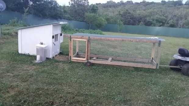 Con el trailer Levante la parte delantera de la diapositiva de la casa del remolque debajo entonces baje el frente a la 2 x 4 x 10' la lengua con un 60% del peso hacia adelante del eje. El trailer se basa simplemente en el orificio del pasador de remolque en mi cortadora de césped. El peso de la coop y ejecutar evitará que deslizamiento el remolque a la siguiente parte de la yarda. Después de obtener la casa me levante un extremo de la carrera y sepárela entonces repetir el mismo proceso con el otro componente. Juntas a tope las piezas y la cooperativa está dispuesta a soltar las gallinas. La próxima vez que todo de que mal añade unas fotos solicito cargado (agregado). Mantuve el remolque sencillo y sin pintar como solo puedo ponerlo de lado en mi vertiente de cortacéspedes.