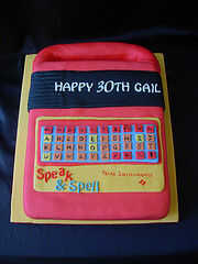 Escuela de mi hijo tenía un carnaval temático años 80 y pedían a los padres a donar tortas para un paseo. Vi una foto de este pastel habla y hechizo y recuerdo que me encantaba mi habla y hechizo cuando era un niño. Así que aquí está. (aviso que casi todos los pasteles son comprados en una tienda, jeje.)