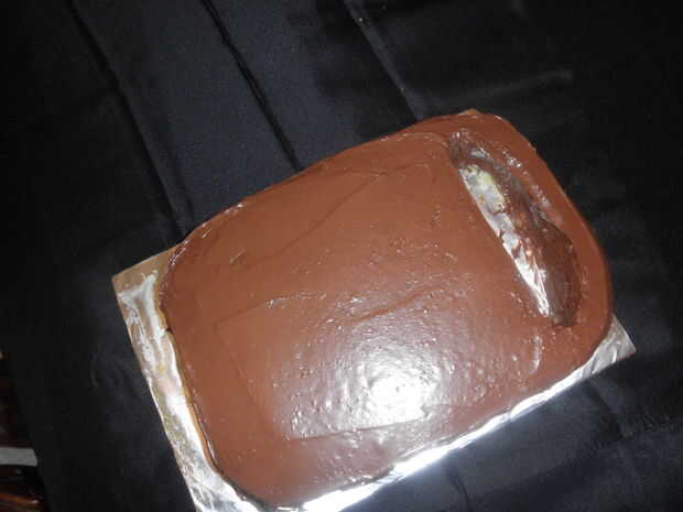 Cuando esté satisfecho con la forma, deje la torta enfriar durante un rato, luego sacar y cubrir con glaseado.