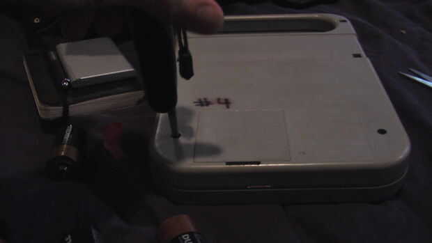 2. Quite los dos tornillos en la parte inferior de la espalda (estos serán philips o estrella cabeza [Torx]). Tornillos de fijación a un lado en su imán de hardware o algún otro lugar seguro.