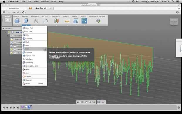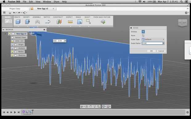 Entonces, elegí la escala, en el menú modificar, seleccione el boceto e Introduzca un Factor de escala para hacer la mm 1024 esbozar unos 40mm de longitud (para un factor de 0. 04). Una vez que he comprobado que se trata del tamaño que quiero, puedo hacer clic en acabado Base.