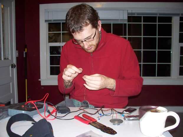 Todo fue embalado lejos en una bolsa de cadera y oculto bajo su vestido. El altavoz estaba atado a su sujetador en la parte delantera y el mecanismo de cordón pull & interruptor de palanca fue unido a la banda de su sujetador en la parte posterior. Hubo una cadena de conexión el retractor de la herramienta de pesca con mosca a la palanca para que cuando usted tiró de aproximadamente 8" del cable, el interruptor sería activar el reproductor de MP3.
