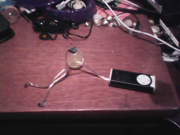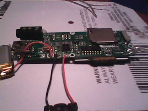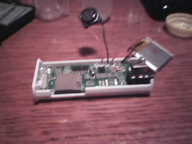 Este es el reproductor de mp3 que utiliza para hacerlo hablar. Me lo abrió y quitado el pequeño Altavoz, luego soldar dos cables al jugador. Para aumentar el sonido caliente pegué el altavoz a una cáscara de la máquina expendedora: magnifica mucho! Y colocando los LEDS a los hilos de altavoz que sale el reproductor, los LED parpadean en el tiempo con el sonido.
