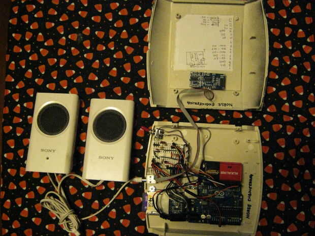 Necesitaremos el 'tmrpcm' y 'SD' tarjeta biblioteca modificada. Usted encontrará en el archivo zip que puede descargar de apcmag.com/arduino.htm (ver el epígrafe 5 del proyecto). Copiar las carpetas 'SD' y 'tmrpcm' en la carpeta de 'bibliotecas' en la carpeta Arduino IDE (sí, sobreescribir la original biblioteca de 'SD') y reiniciar el IDE si usted ha tenido funcionando ya. El archivo 'apc_05_audioplayer.ino' es nuestro bosquejo, que todo lo une. Botas de Arduino, enciende el módulo de SD, comprueba la tarjeta y espera a que pulse el botón. Presione por menos de un segundo y podrá cargar y reproducir el primer archivo. Si pulsas el botón otra vez para menos de un segundo, podrá pausar la reproducción; pulsando de nuevo reanuda la reproducción. Presionan por más de un segundo, y a saltar a la siguiente pista de audio y comience a reproducir automáticamente. No hay ningún control de volumen — esto ajustas a tus altavoces amplificados. Desafortunadamente, la biblioteca 'tmrpcm' crea un pop cada vez que una pista se detiene o inicia. Un filtro de paso bajo ayudará un poco, pero es causada por la señal PWM encendido y apagado