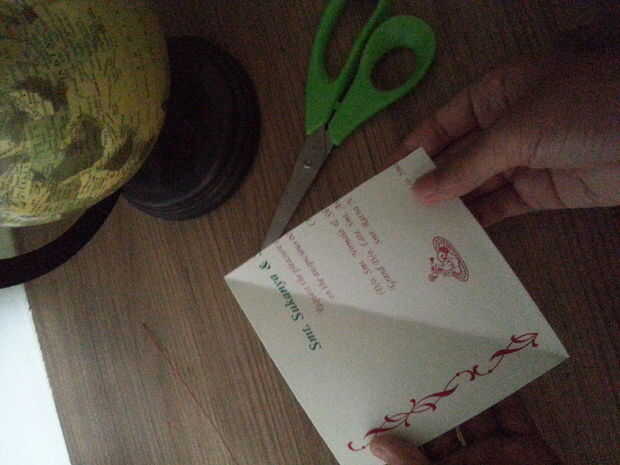 Puede hacerlo en cualquier papel, pero la tarjeta funciona mejor. Estoy usando una vieja invitación de la boda.