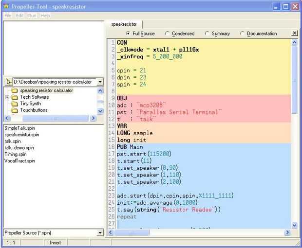 Si nos fijamos en el código de speakresistor.spin , verás tres objetos están cargados.