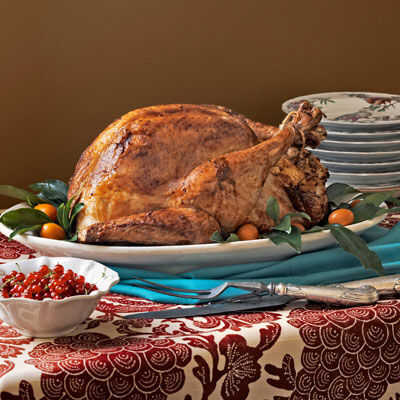 4. Añadir valor de tres tazas de caldo de pavo en la sartén y luego asarlo. Cuando ha transcurrido 45 minutos, Hilvanar el pavo con los jugos y reduzca el calor a 350 grados ° F. Hilvanar cada 45 minutos y agregue una taza de caldo cada turno hasta que el pavo esté cocido completamente. El asado será completo entre los tres y tres horas y media o hasta que alcance una temperatura de 165° grados Fahrenheit.