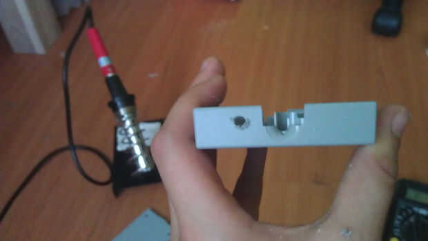 Tomar una mechas que es ligeramente más grande que el cable y perforación un agujero, lo puedes hacer casi cualquier lugar pero decidí hacerlo un poco a la izquierda del orificio del USB. Sólo asegúrese de que retiró la placa principal. Después de taladrar el agujero, limpiarlo un poco con el cuchillo.