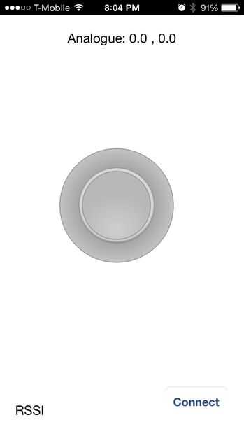 Para la interfaz de iOS vamos a mantenerlo simple y sólo tiene que utilizar un típico gamepad análogo y un botón de conectar. el código para el control del stick analógico viene curtisy de https://www.cocoacontrols.com/controls/jscontroller