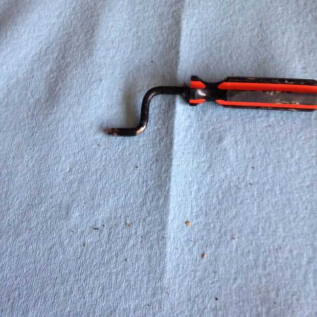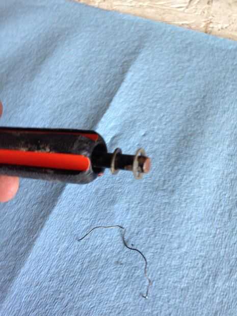 1. pegar la varilla con el destornillador. 2. Agregue una arandela y clip c. 3. Tire de la varilla a través hasta que todo esté en su lugar. 4 ahora corte la segunda arboleda en la parte superior y f el mango y el clip en c o elctronico.