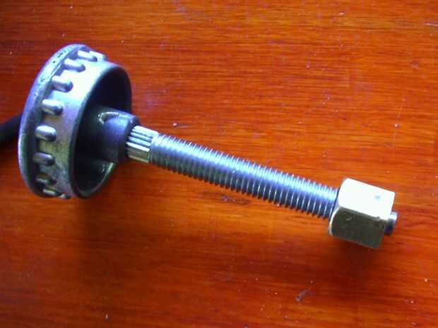 En la misma tienda donde venden la herramienta que encontré muy caro, me compre un tornillo de acero con tuerca de bronce alta, que se utilizan para apretar los colectores de escape de motores. El tornillo era estándar, no como la foto que muestra por qué no encuentro otro.