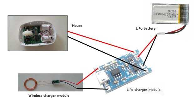 He utilizado el módulo de cargador de LiPo más abajo. Tiene orificios de conexión para batería, potencia de entrada y salida de energía (para ratón, mouse en este proyecto).