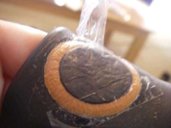 Despegue el plástico, y allí tienes un parche autocuración neumático. Asegúrese de al pelar el plástico fuera el parche que usted pela desde el centro del parche en el borde del parche - de lo contrario los bordes podrían estirarse hasta el tubo y afectan la calidad del sello.