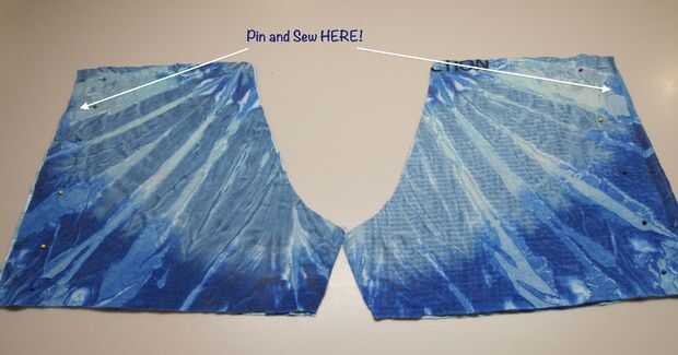 A continuación, asociar las piezas juntos para que tengas dos paneles dobles, derecho contra derecho juntos y pin por el lado derecho que es frente a una con curvas (ver imagen). Abierto. Ahora tienes los dos paneles