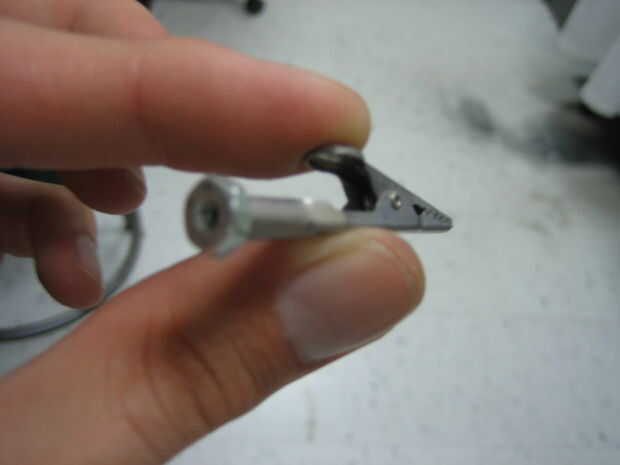 pegamento una pinza en una tuerca con pegamento, a continuación, utilice ZapGel para agregar soporte estructural al enlace.