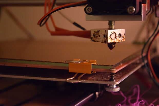 Ahora, utilice clips binder para fijar la superficie de impresión de vidrio a tu cama caliente. Trate de no tocar el PEI tanto como sea posible por lo que permanece limpio, pero una vez que es seguro seguir adelante y suavemente Limpie abajo con acetona (o isopropílico) de todas formas para deshacerse de cualquier residuo aceitoso de las manos.