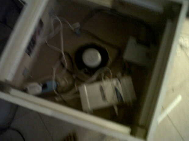 También corrí el cable a una regleta que me había puesto en la caja, la tira de la energía los LEDs y el amplificador conectado y fue todo el tiempo (por lo tanto los 2 interruptores uno para LED y otro para música) lamentablemente no tengo una foto de la regleta pero que fuera el mismo agujero que la