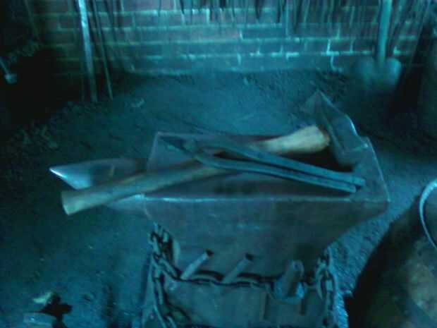 "La fragua en el sitio es bastante grande - grande suficiente para hacer todo tipo de herramientas. En casa, utilizo una fragua de gas de un tanque de propano. Es sobre 4-5 pulgadas de cuadrado y más que suficiente para las uñas. No puede tomar la cabecera de la uña, aunque."
