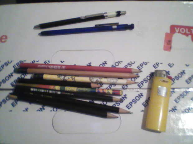 3) espere enfriar las cosas y raspar chacoal de quemado lápices con el cuchillo